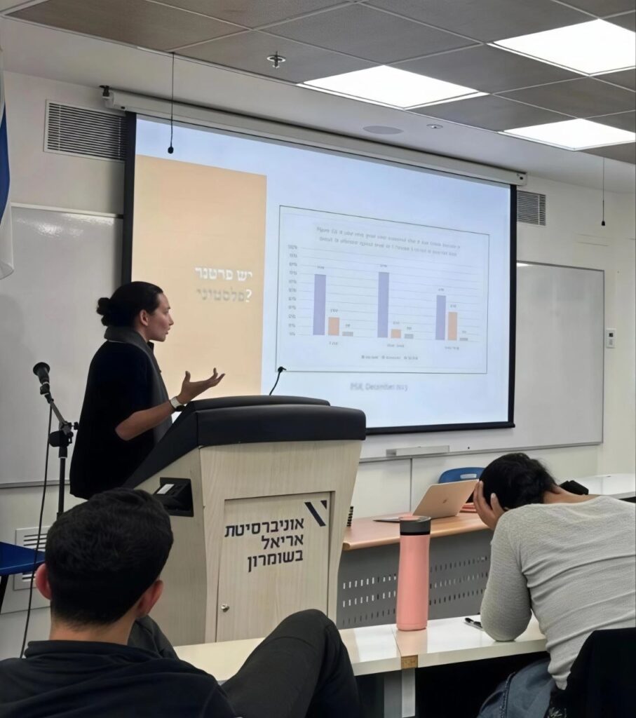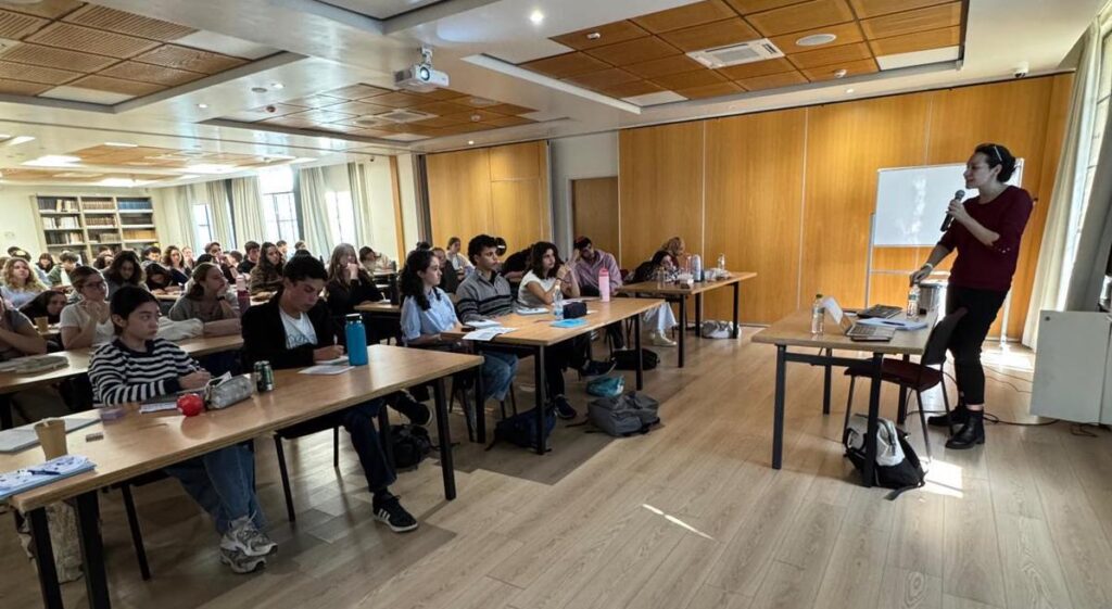 Geneva Initiative Deputy Director Tehila Wenger gave a lecture to a group of students from the Aderet pre-military academy. The lecture focused on the two-state solution and the principles of the Geneva Accord.