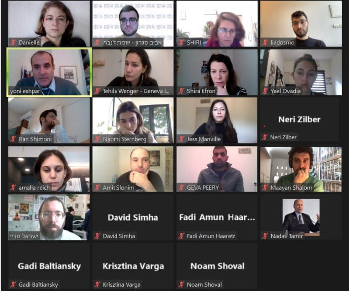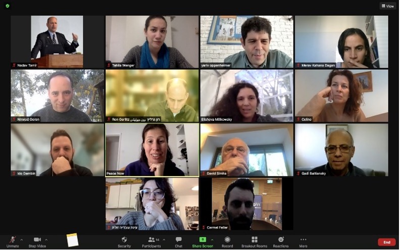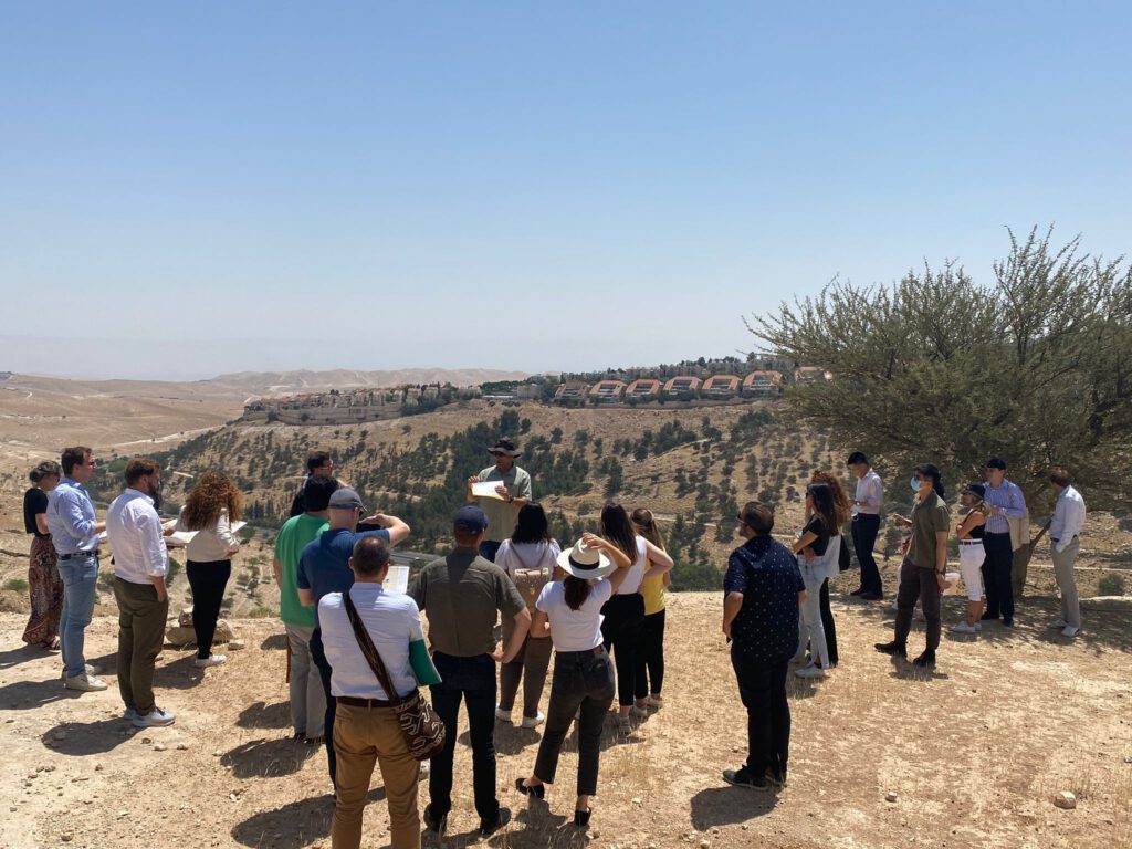 The participants heard from a settler leader and an Israeli peace activist, followed by a discussion with a former Palestinian minister.